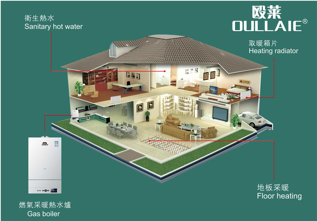 洗浴+采暖热能系统是针对中国小康家庭设计的以天然气焉主要能源的家庭分户独立式采暖系统。集舒适取暖、生活热水功能于一体。该热能系统包括燃气采暖热水炉、输水管道、散热器、控温阔、分水器、温度控制系统及各种尖端设备,经科学的专业设计、合理的造型和匹配调试,达到整个系统精确控温,高效、节能、环保、智能运行,能完全满足不同家庭的日常取暖舆生活热水的需要。